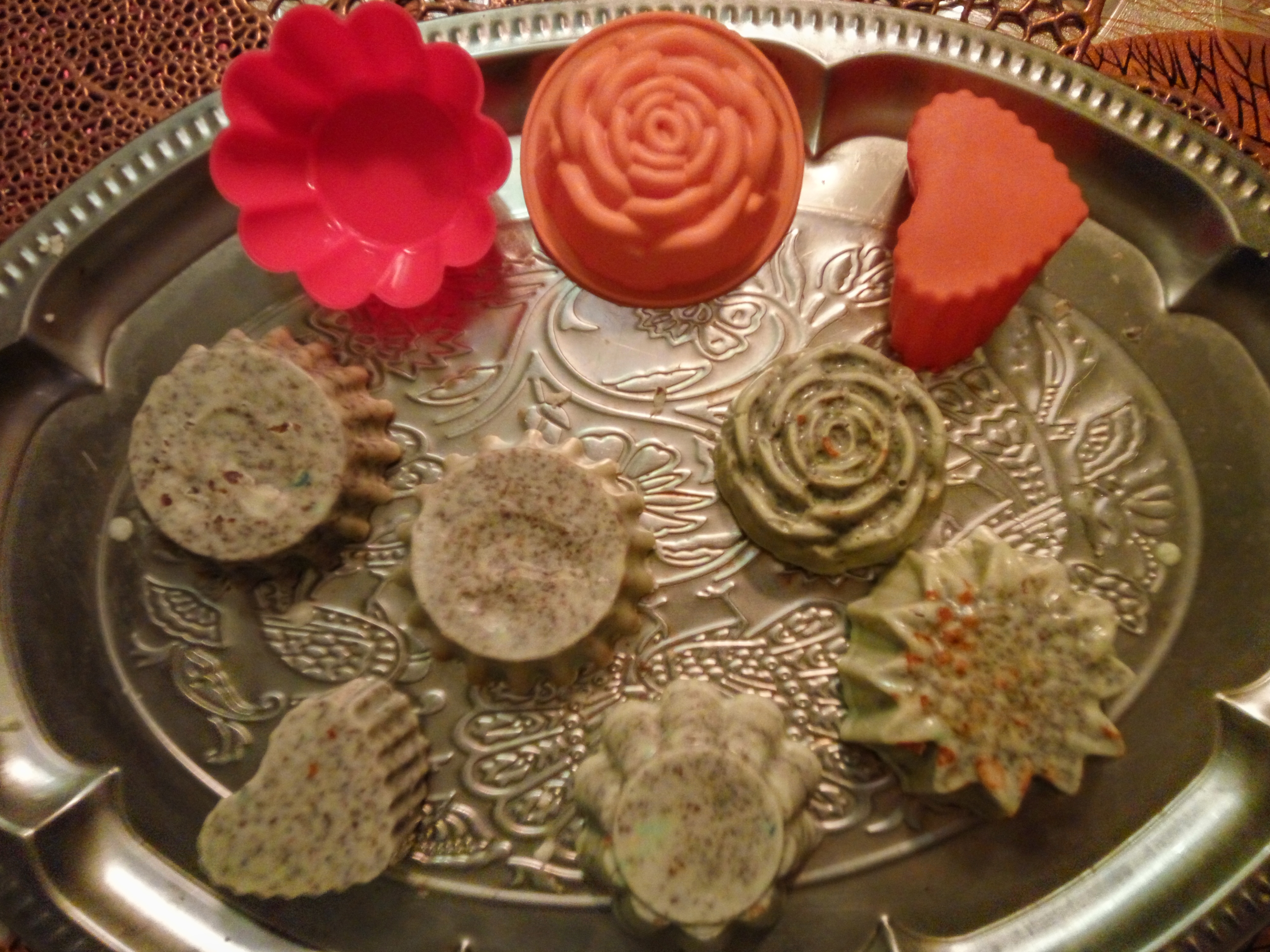 5) А так же, пигменты, ароматизаторы, полезные компоненты. Я добавляю кофе молотый, жмых, любые травы, можно даже сахар добавить. Если мыло прозрачное можно в центр положить веточку или цветок.