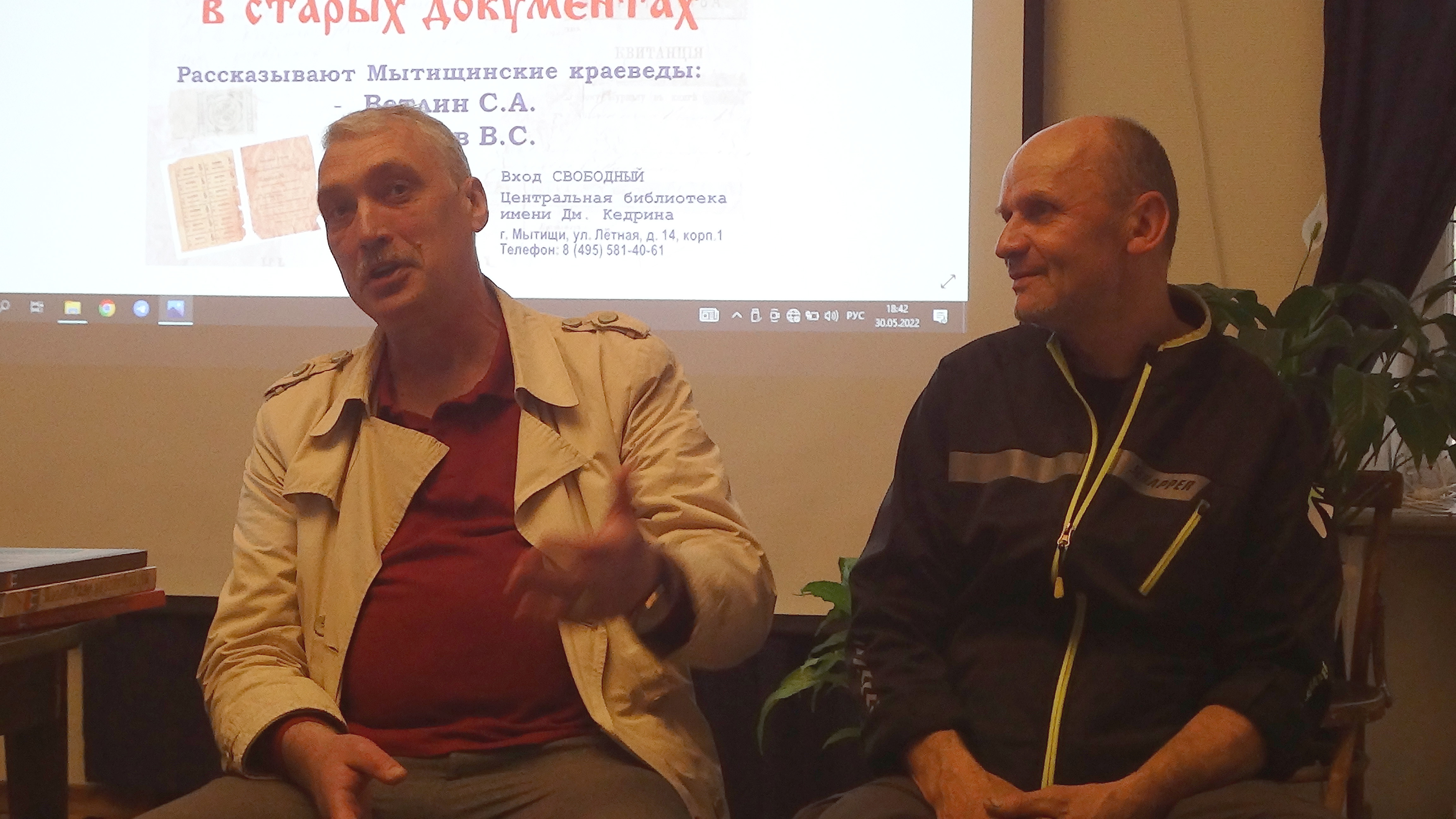 30 мая, в офисе Московского областного отделения ВООПИиК на Покровском бульваре состоялась лекция краеведов В Фролова и С Ветлина "История Мытищ в старых документах".