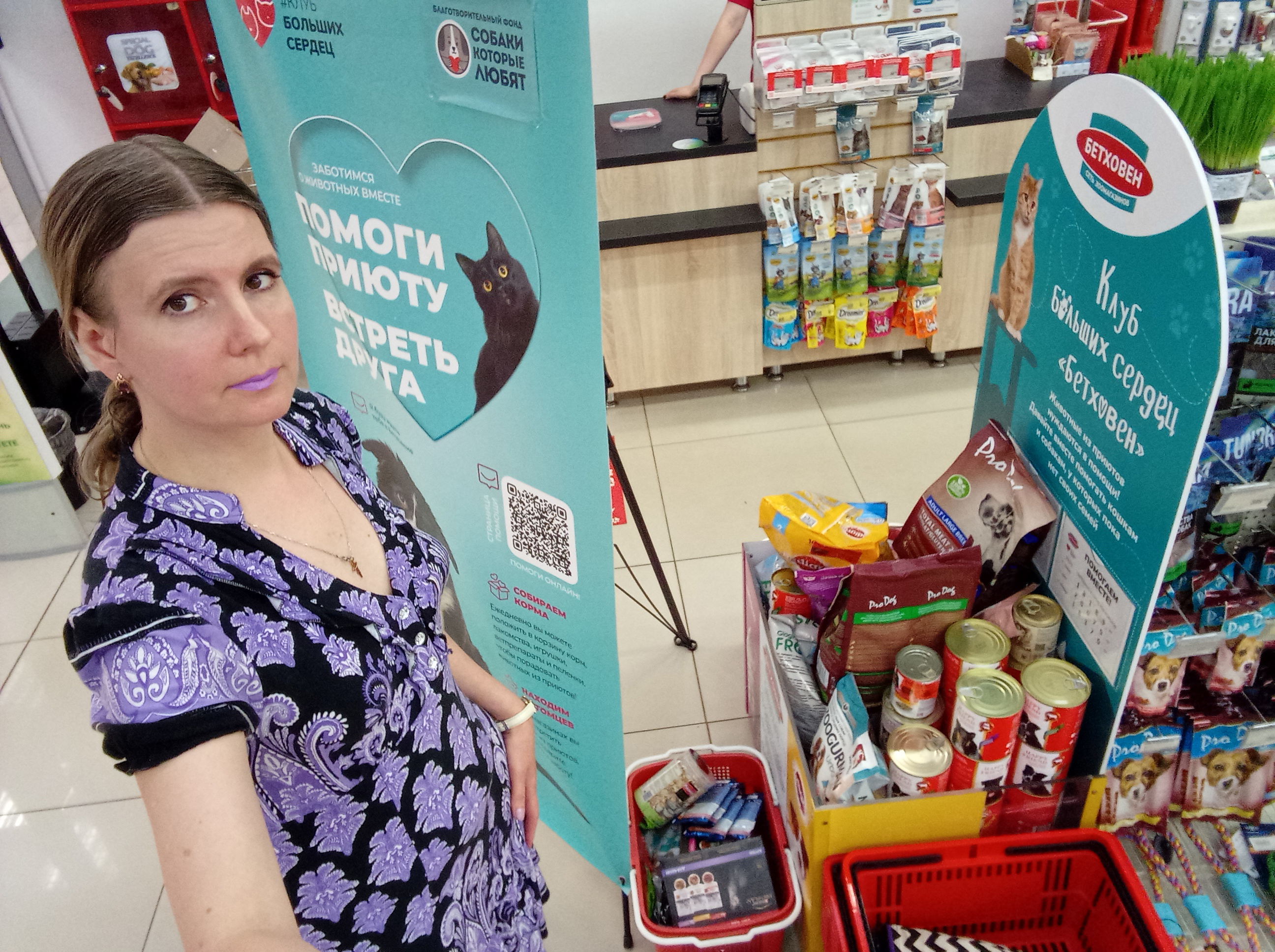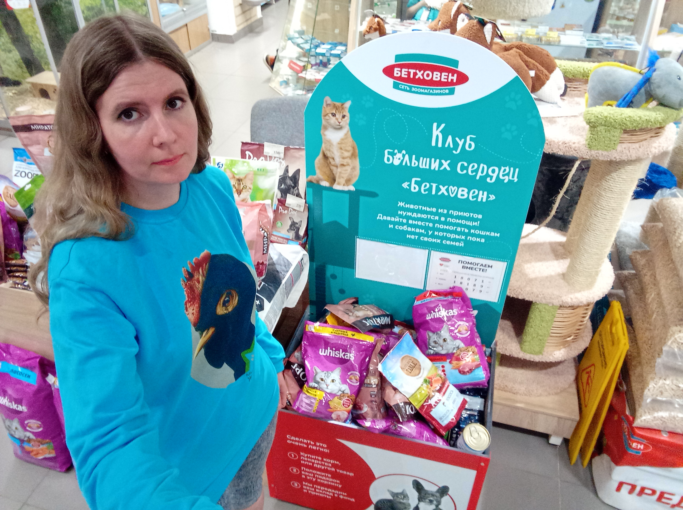 24-25 июня собирала корма для бездомных животных и приюта "Хочу жить дома" в Бетховене на м Бибирево, в ТЦ Александр. Там проходила акция по сбору кормов "Клуб больших сердец"