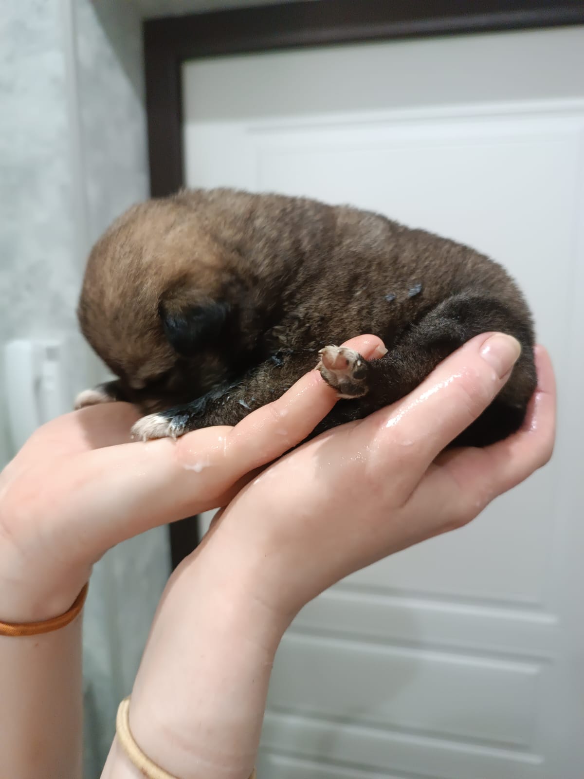 3) Маленький милый щенок, мальчик. Самый маленький и слабый в помете. Щенок еще нуждается в особом уходе 5-8 фото