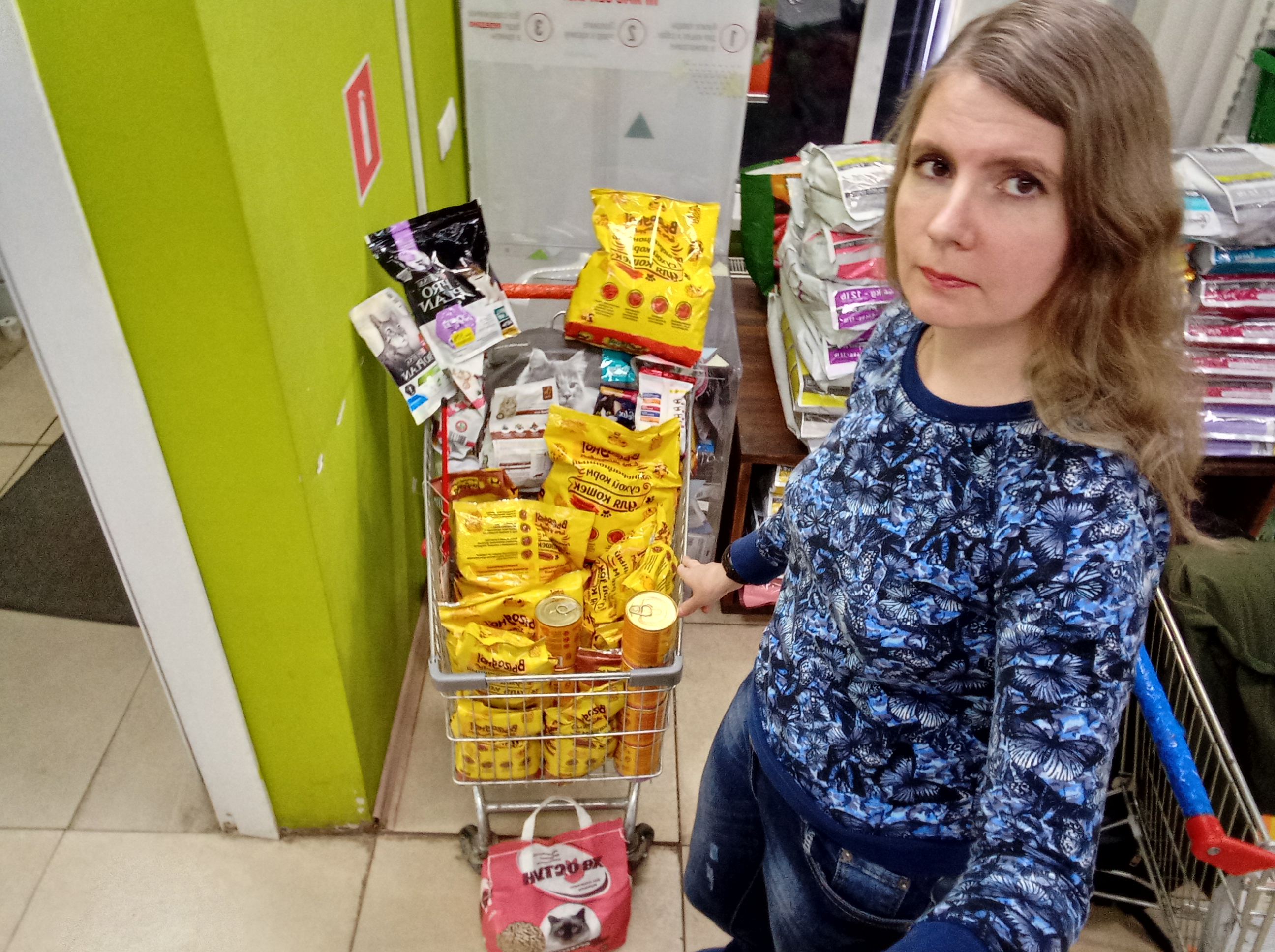 Через час всех запустили обратно в ТЦ АЛЕКСАНДР, и я продолжила собирать корм. В итоге за 2 дня набралось довольно много корма!